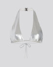 Introducing The Nani Bikini Top – a metallic marvel for your beach days. The lame halter top offers timeless style and support with moderate coverage. Pair with The Nani Bikini Bottom to complete the look, or with The Pia Bikini Bottom for cheekier coverage.