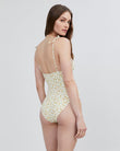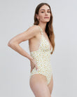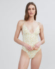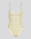 The Olympia is a classic one piece silhouette with moderate coverage on bottom, and ruched cups that have a rick rack trim and adjustable ties on the shoulders to manage your support.