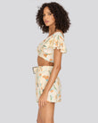 Flirty and feminine, The Renata Top is our newest ruffled crop top. This style features a v-neckline, ruffled sleeves, a low, scooped back, and an invisible side zipper. Pair it with the coordinating Renata Short to wear as a matching set.