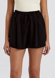 The Rois Short, designed in our signature soft tailoring fabric, offers a high-waisted, relaxed fit. The short includes pockets and an elastic waist band. Pair with the Varena Tank and one of our cashmere sweaters.