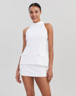 The Ronit Sleeveless Top features a flattering and versatile silhouette in our soft tailoring fabric. It includes a mock neck collar and two functional front pockets at the hips. Pair this top with the Micayla Skort.