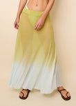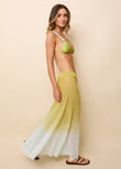 Complete your look with the Theresa Skirt – a flowy, maxi-length skirt designed for effortless vacation style. Made from the same sheer gauzy rib fabric with a stunning ombre dye, and the elastic waistband ensures a comfortable, flexible fit. Pair with the matching Sheli Tank and Ellery Bikini.