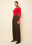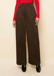 The Tori Pant, cut from premium cotton blend, features a high waisted, wide leg fit. Designed with pleating in the front, and a button tab closure. Pair with the Debra Top.