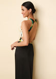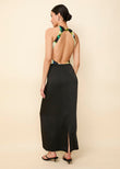 The Valencia Skirt is a high waisted maxi skirt with a satin finish and designed in a flattering, slightly flared silhouette. The back has knee high slit and elastic waistband, complete with a hidden zipper closure. Pair this with the Iman One Piece.
