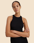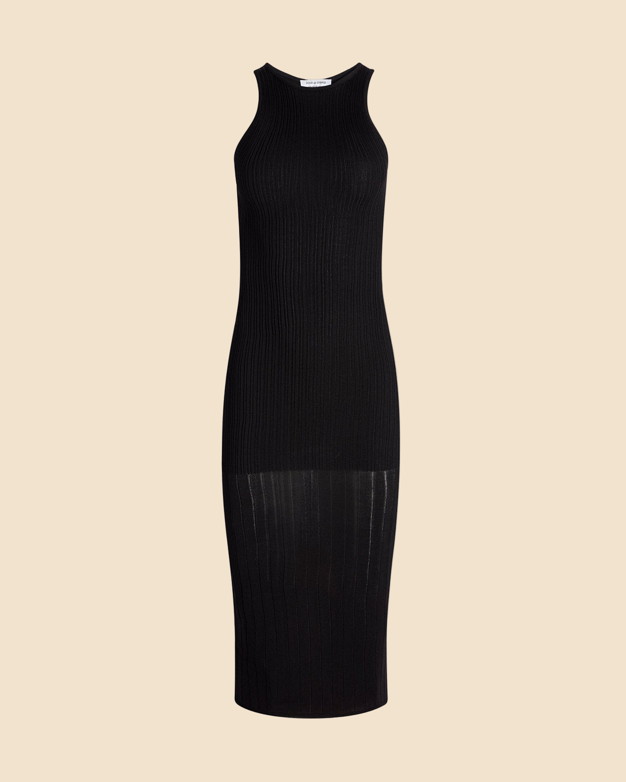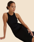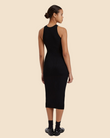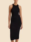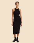 The Varena Dress is made in our structured viscose knit. The midi length dress features a crew neck, vertical ribbing, and fits to the body.